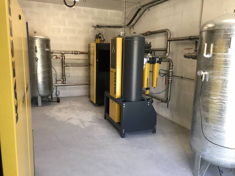 Nous avons installé une centrale de production et de traitement d'air comprimé KAESER Compresseurs complète pour un de nos client en plein agrandissement.